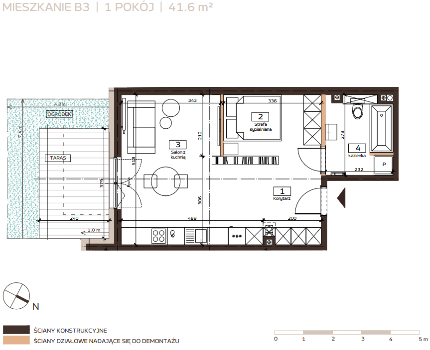 - Salon z kuchnią 23.20 m²