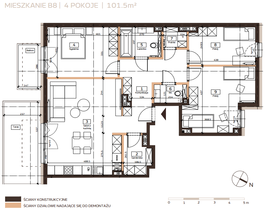 - Salon z kuchnią 30.80 m²