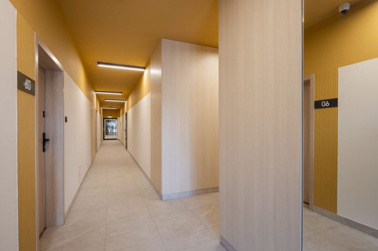 W komfortowym, pięciopiętrowym budynku mieszkalnym, wkomponowanym pomiędzy ulicę Dowborczyków a Targową znajduje się 117 mieszkań o zróżnicowanych metrażach – od kawalerek po M4. Mieszkania mają ustawne układy, można je łączyć tworząc nawet 100-metrowe apartamenty.