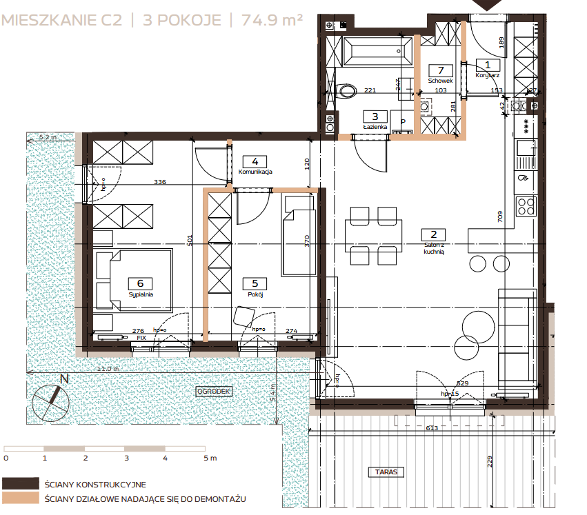 - Salon z kuchnią 34.50 m²