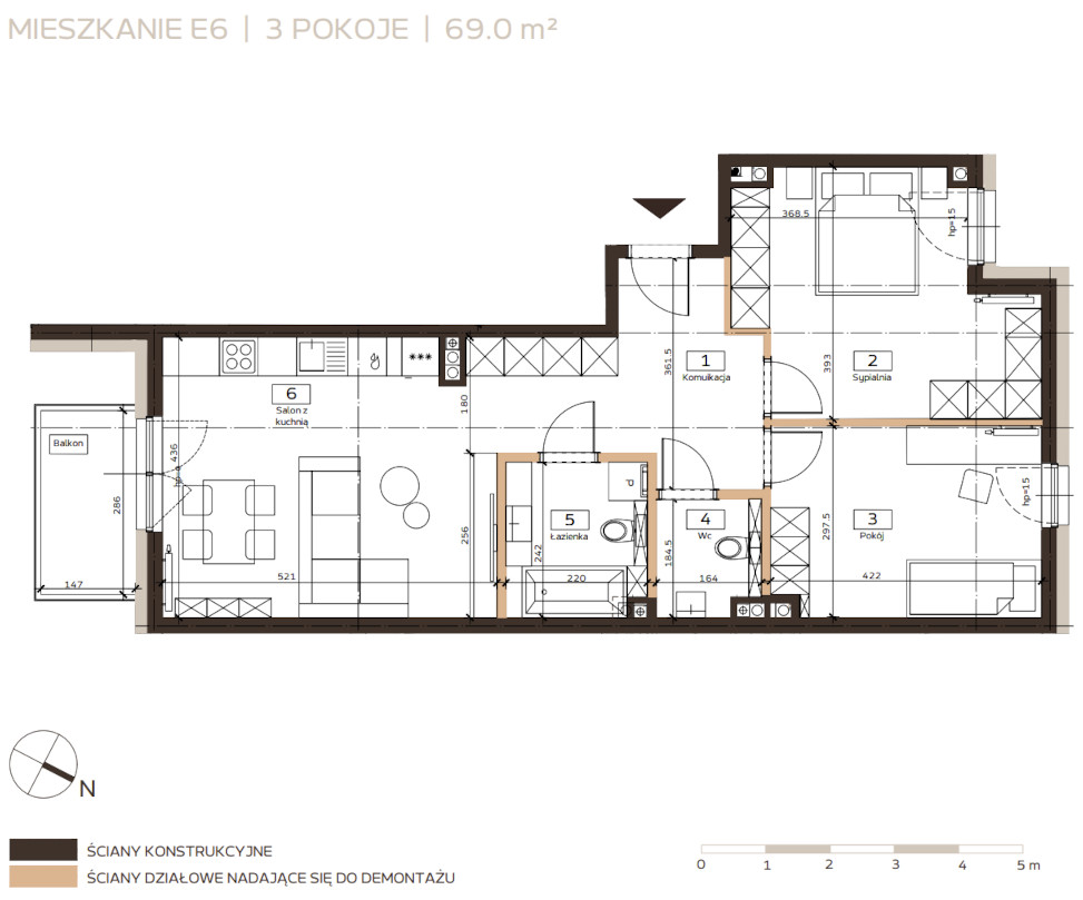 - Salon z kuchnią 22.00 m²