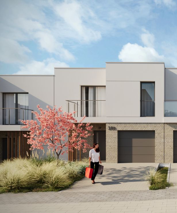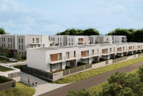 Dwupoziomowe domy w zabudowie szeregowej.